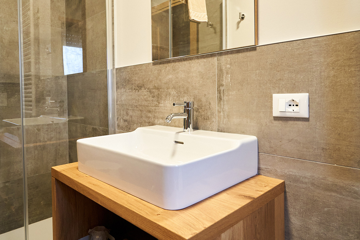Hotel Pennar’s Superior double rooms are 16 m² in surface for 2 people with double bed or twin beds and the possibility to add a third one. They’re on the second and third floor, serviced by the elevator. They’re spacious and comfortable, with a wide balcony. They come with a wardrobe, a luggage bench, and a desk. In the private and windowed bathroom you will find a courtesy kit, hanging fixtures, resin shower tray, hand shower and a comfort type shower head. Refined and contemporary style oak furniture, with handcrafted accessories and refined textiles, they’ll make you feel the warm embrace of a mountain environment, comfortably pampered with comfort, with no hardships.